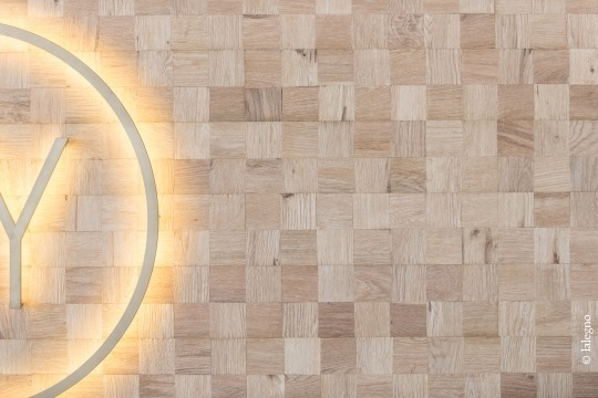 The chefs definitely did not let themselves be limited by known flavour combinations and cooking traditions. Nor did the interior designer. Alongside a multi-layer wooden floor, the warmth of real wood recurs in the block-patterned accent wall. The rustic look of this wall covering reflects the rebellious side of the star kitchen.